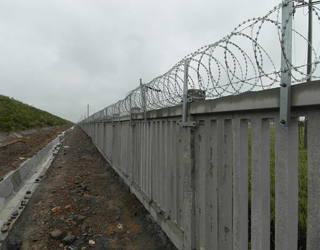 鋼筋混凝土立柱金屬網片防護柵欄由:鋼筋混凝土立柱、金屬網片及連接部件組成,防護高度1.8m。